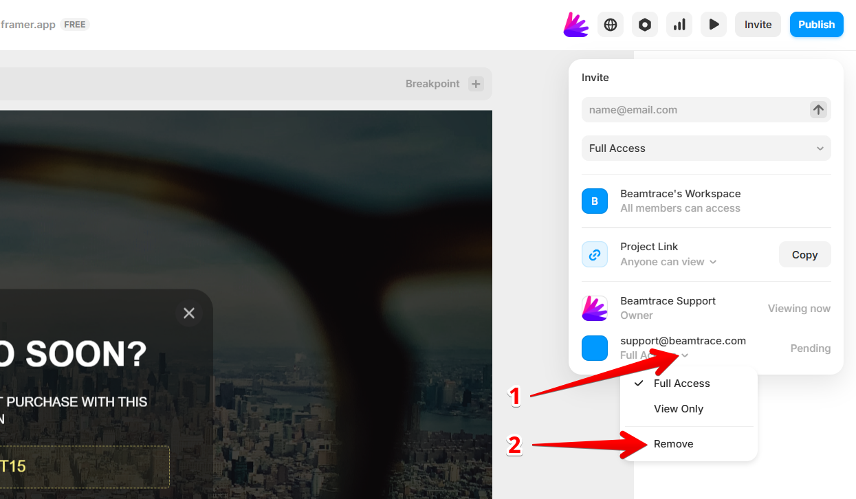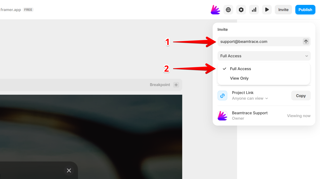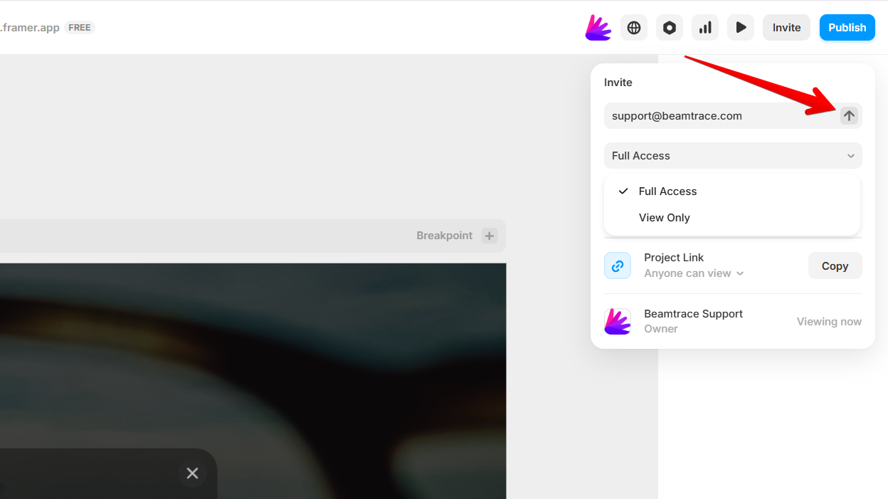 Beamtrace may occasionally need temporary access to your Framer project to help optimize your website’s visibility and ensure everything is set up properly.