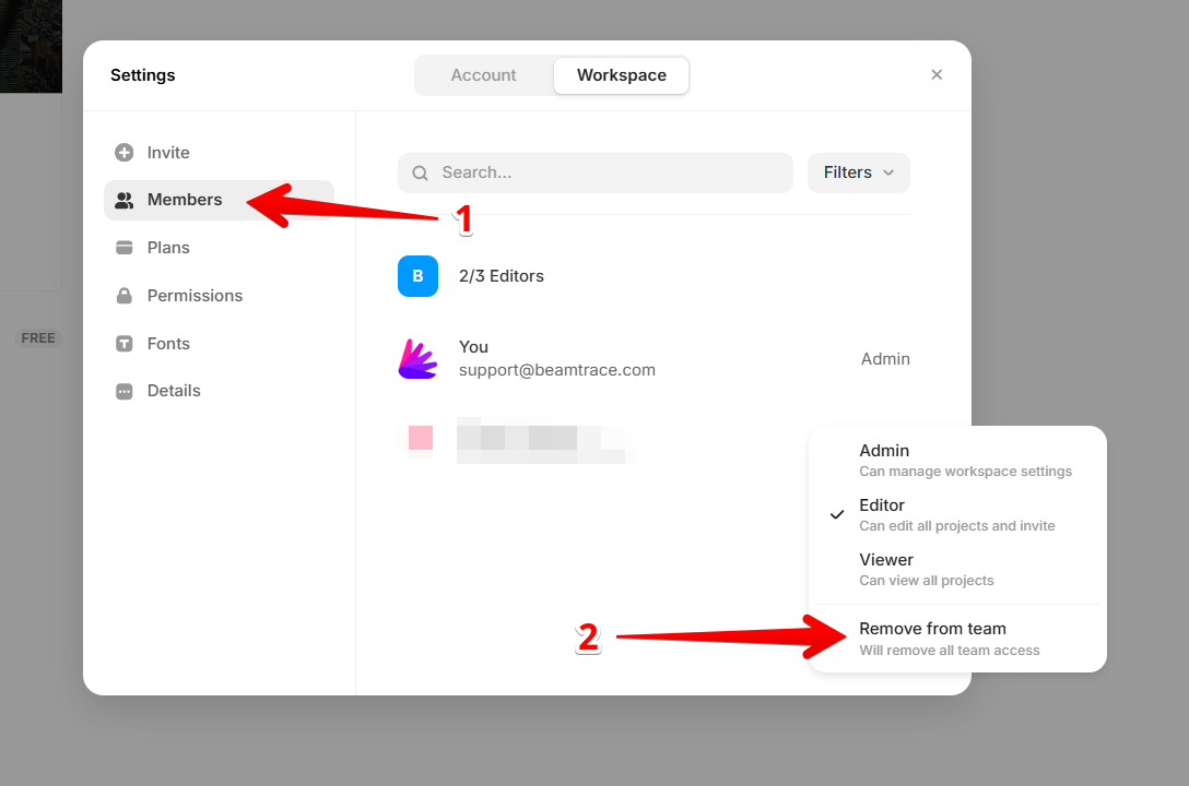 Removing Beamtrace User from the Workspace