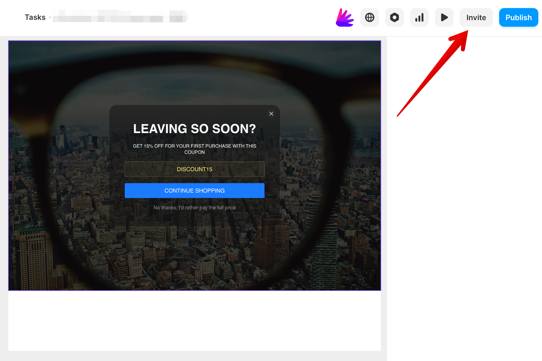 Open your Framer project and click Invite in the top-right corner: